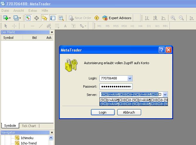 Ich hab mir die Alpariversion runtergeladen, da war das schon voreingestellt und die Kurse sind gut. An sonsten müßtest du eigentlich die Möglichkeit haben über das Programm direkt ein Demokonto zu eröffnen. Da wird meiner Ansicht nach alles automatisch eingetragen.