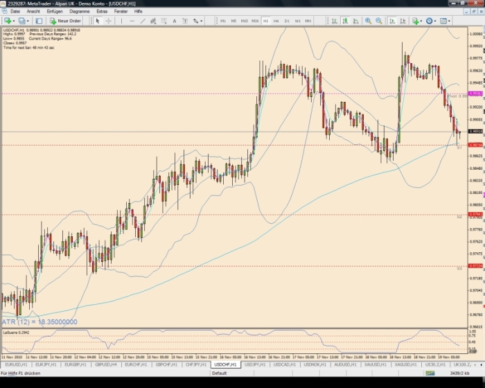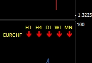 Jetzt möchte ich fragen, ob jemand wohl eine Idee haben könnte, wie es möglich ist, diesen so darzustellen, dass jeweils der Trend den der Laguerre Indikator sehr gut anzeigt, im Wochen, Tag, 4 h und 1h und 30 Min. Chart in einem Kästchen darzustellen?