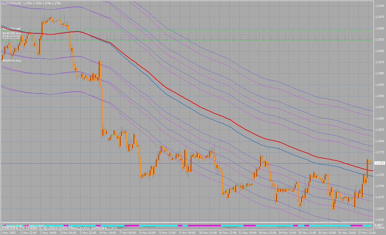 Das Problem ggf. zwei dreimal ausgestoppt zu werden in der Phase wo die Kurse am oder über den Tunnel liegen wurde ja von mir beim ersten Posting zur Methode bereits erwähnt. Ich händle es so, das ich die Stopps in dieser Phase versuche klein zu halten, was aber auch der Natur dieser Methode nahekommt, da der Channel in der Regel eng ist. Also long z. b., dann stopp unter dem unteren Channelband, dies sind oft nur 20/25 pips.