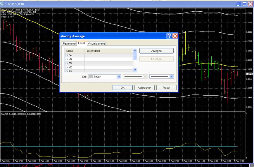So werden die Fiblevels eingetragen: Eigenschaften EMA50 und dann unter Level. Der 89er Level wird sicherlich nicht so oft erreicht, da CATFX50 nat. nicht am Boden ein Signal gibt.