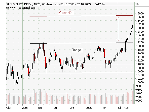 Und wenn man es als Ausbruch aus der Range sieht wäre mittlerweile ungefähr das Kursziel erreicht. -