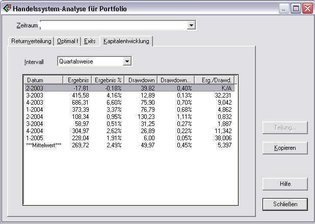 Das kann man so nicht sagen denn bei einer Portfoliostrategie die Einzelwerte der Systeme kumuliert ergeben sich Riskokennzahlen für ein Portfolio,nicht für den Einzelwert!Diese können im Vergleich erheblich abweichen!