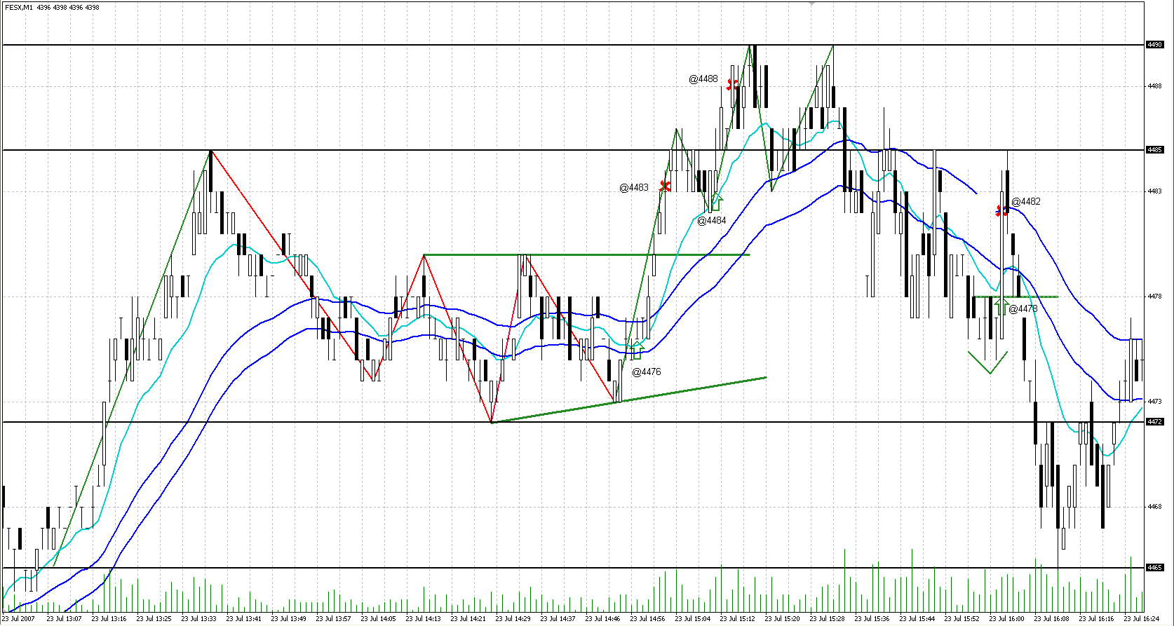 Auf Bild 2 ist zu erkennen, dass die Kurslücke bei 4349 mit 5K geschlossen wurde. Der arme Kerl, der die gekauft hat. Der glückliche, dem diese abgekauft wurden.