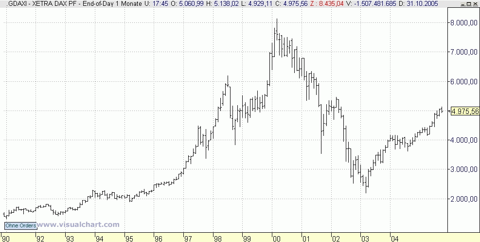 Wir sahen Anfang 2000 den DAX bei über 8100 Punkten, knappe 2 Jahre später war der DAX bei knapp 2100 angekommen, willst du mir jetzt erklären, dass die 30 Unternehmen des DAX rund 75% ihres Wertes verloren haben?