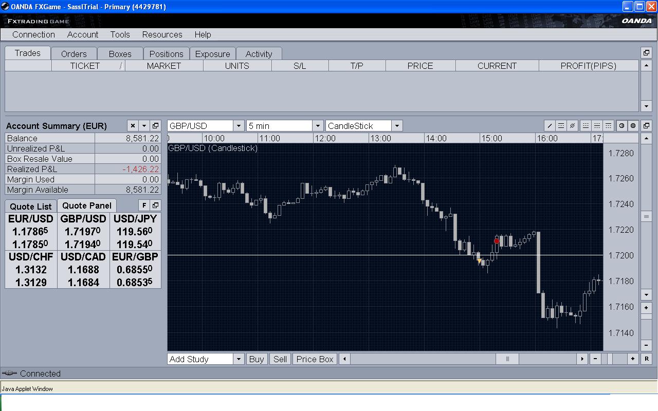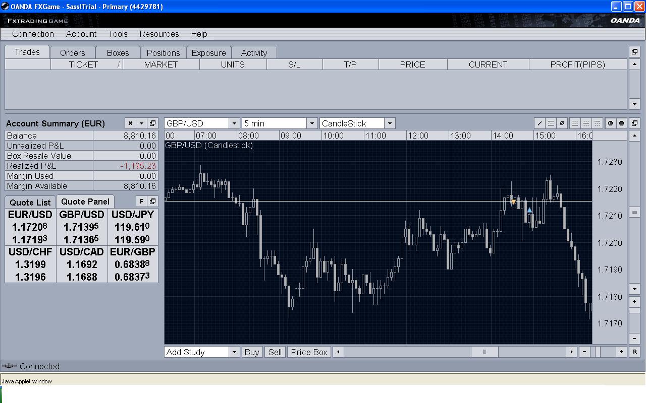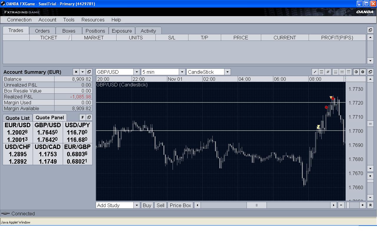 ich ließ die Position laufen, Euro -1 Pip, im Cable konnten gerade noch