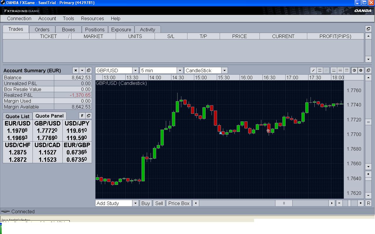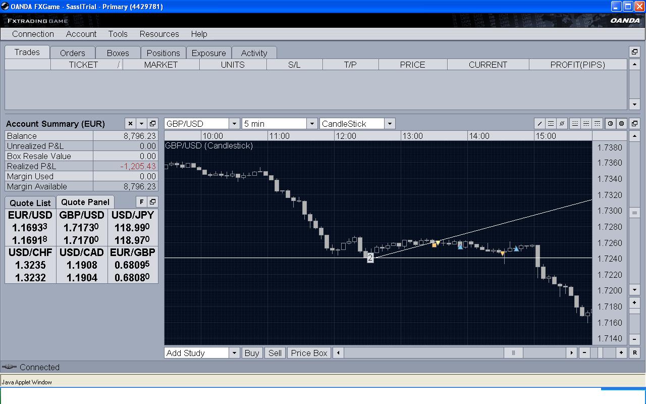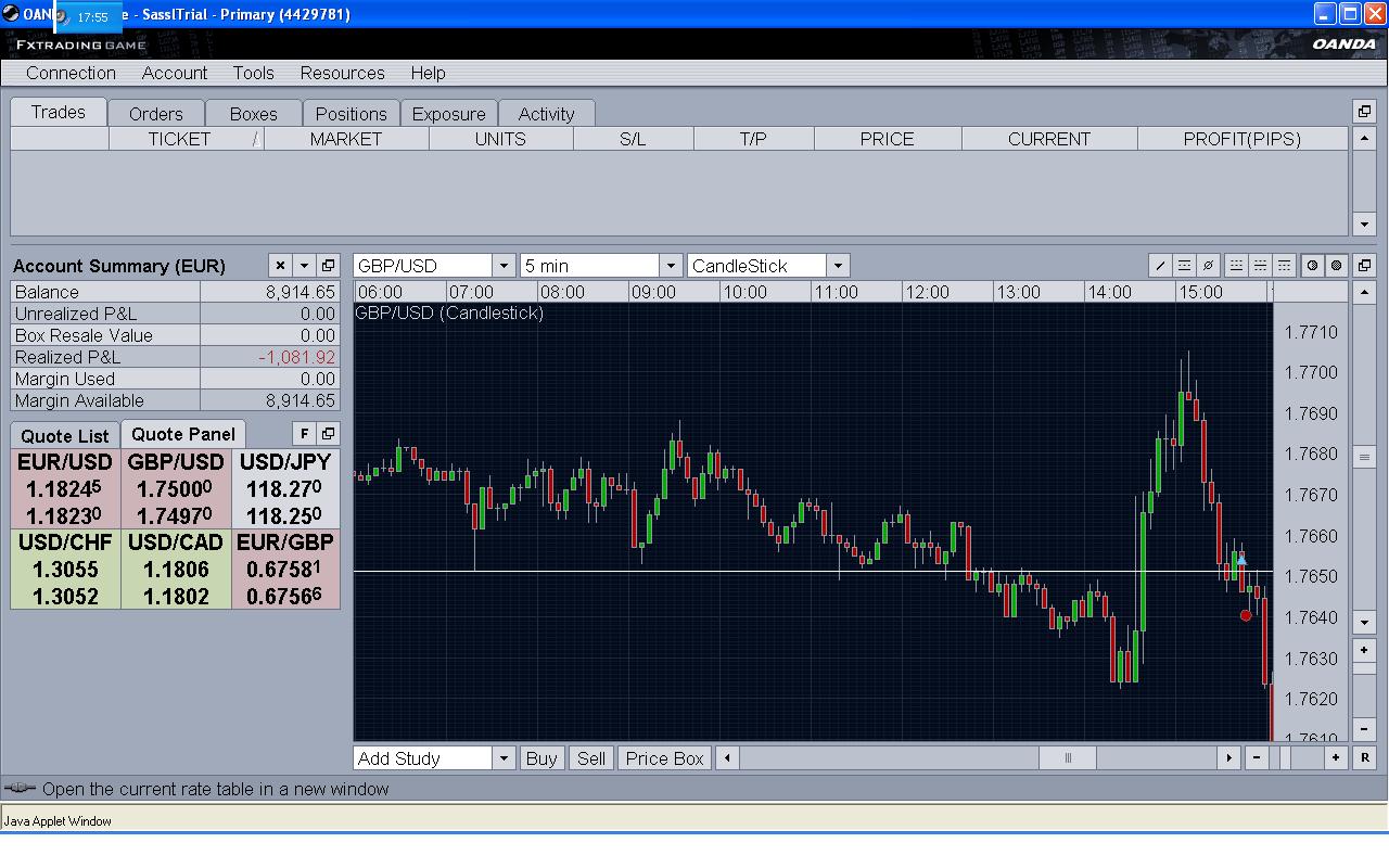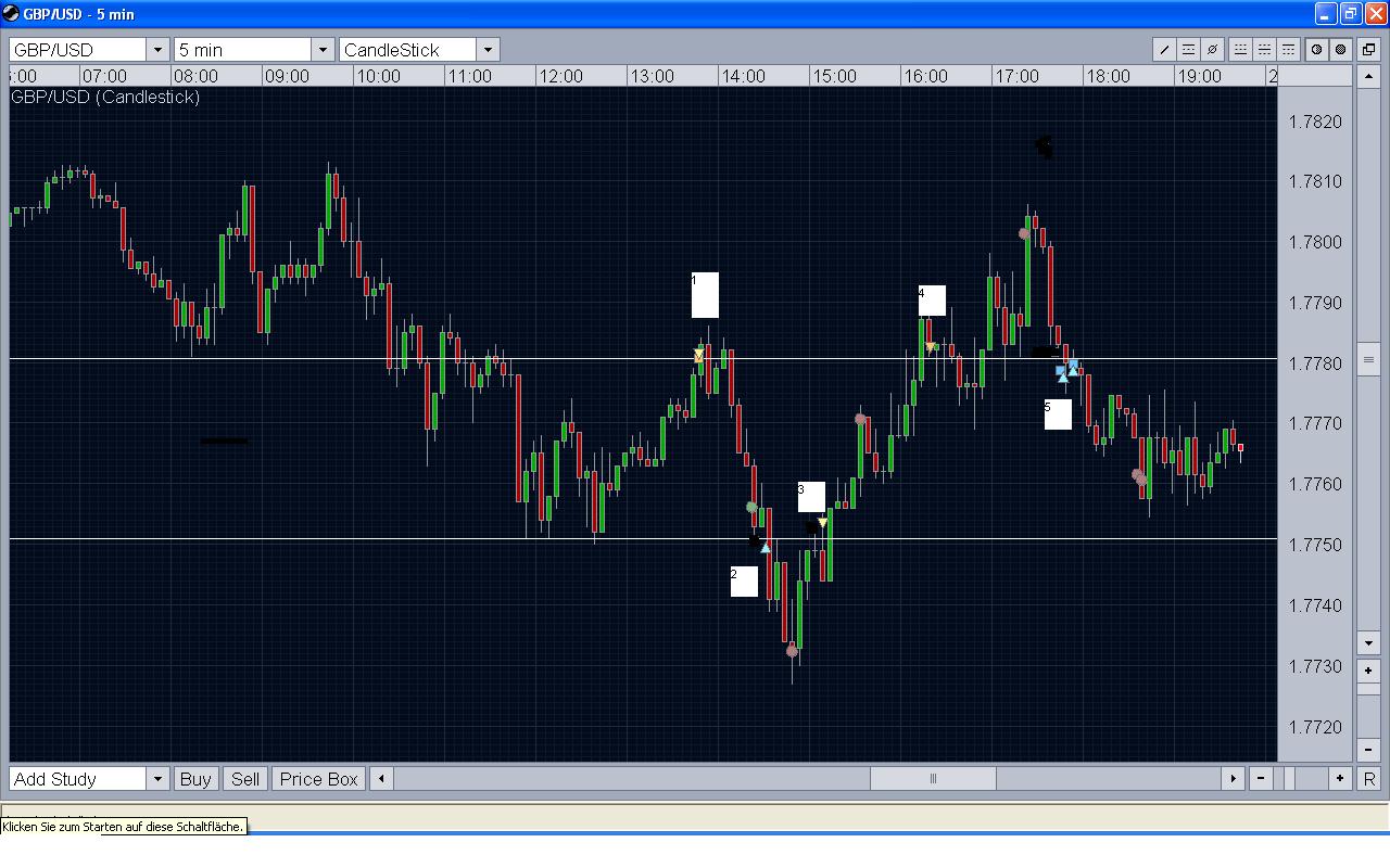 Nach dem Abprall des Cable vom SP 1,7700 war ich mir über den Trend (der ja an solchen Tagen besonders heftig ausfallen soll..) sehr im Unklaren, entschied mich aber letztendlich doch für long im Unterstützungs-