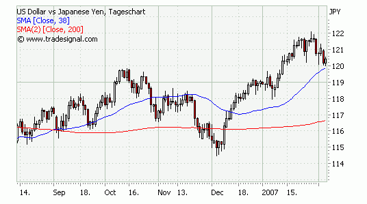 USD/JPY Rangetrading zwischen 120 und 121, aber nur mit Long Positionen.