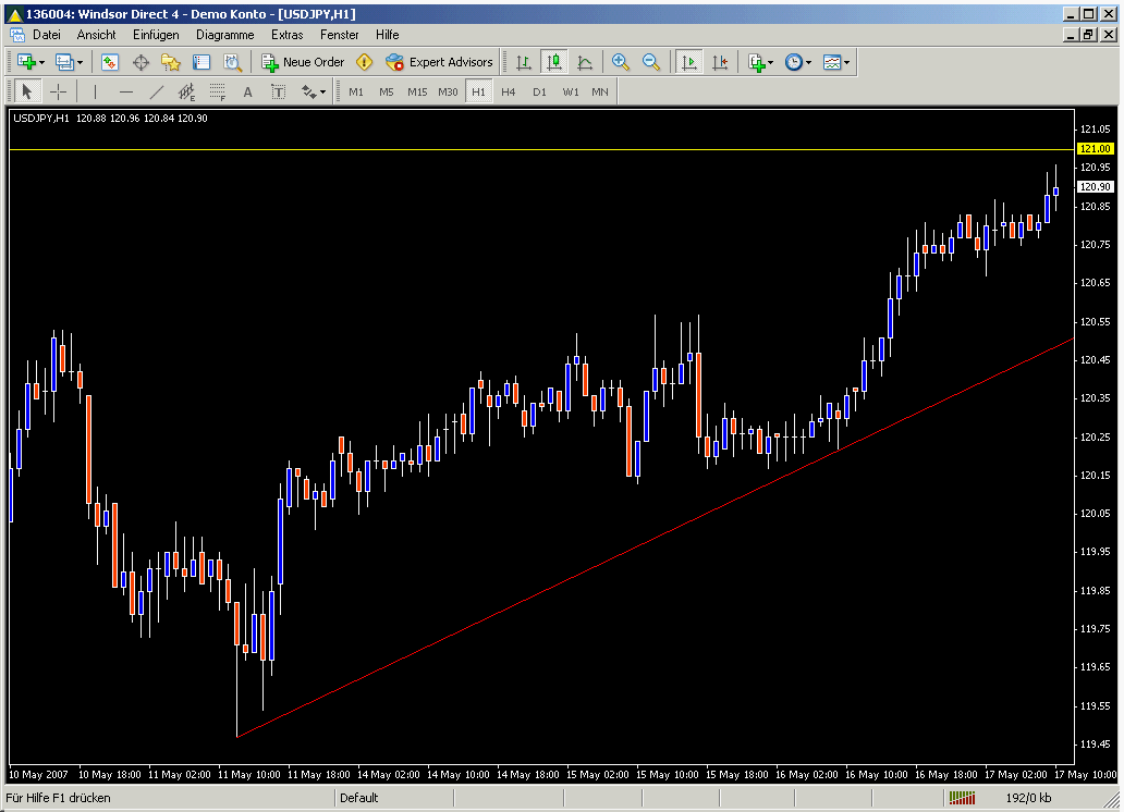 Yen ist sehr schön in den eingezeichneten Trendkanal gelaufen.