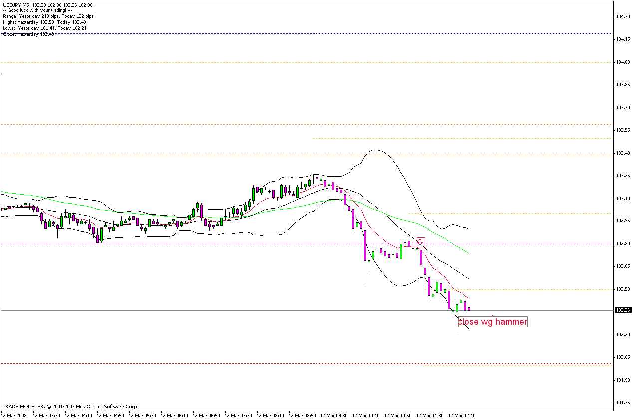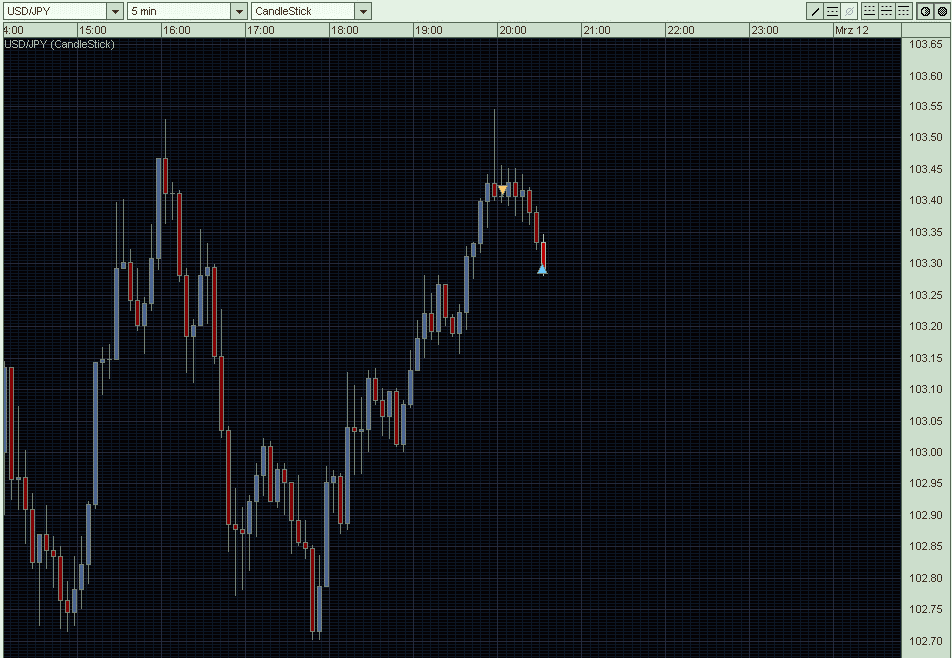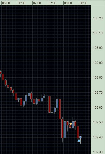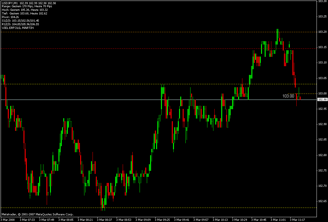 Ich bin um 15.01 Uhr im Yen short gegangen. Da die Reaktion auf die schlechten US-News um 15.00 Uhr sehr schlapp war bin ich um 15.04 mit + 1Pip wieder raus gegangen. Zurecht wie sich anschließend zeigte.