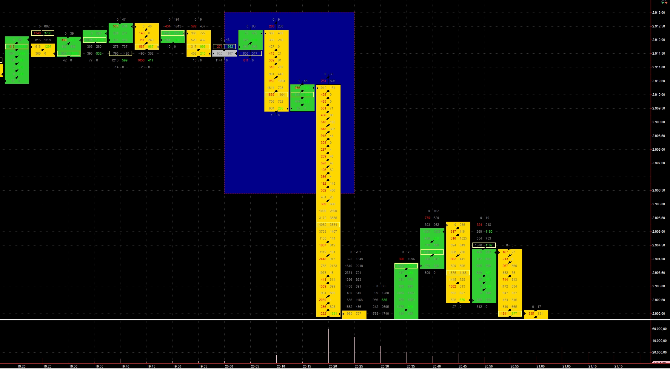 Im S&P war auch wieder an alten ursprünglichen Highs bei um 2905 Trendaufnahme (um 18 Uhr rum) gen Norden. An der 2912, wo der S&P zuvor gen Süden ging, kam der Kurs wieder ins Stocken. Ca. 20.06 Uhr habe ich einen heftigen kurzen schnellen Satz im S&P nach Süden bemerkt. Der Kurs hat sich dann schön langsam 1-2 Punkte zurückbewegt. Dort bin ich Short mit Ziel ca. 2909. Und dann gings sehr schnell. Kurs abgekackt. Ca. 20 Ticks habe ich dann Market glattgestellt. Das Moment war aber hoch und ich bin nach Rücksetzer ans Tages-Low Short für paar Ticks bis 2900. Letztere Art von Trade hasse ich eigentlich wie die Pest, weil ich keine neuen Lows verkaufe. Das war nur dem Momentum geschuldet.I go for it! -