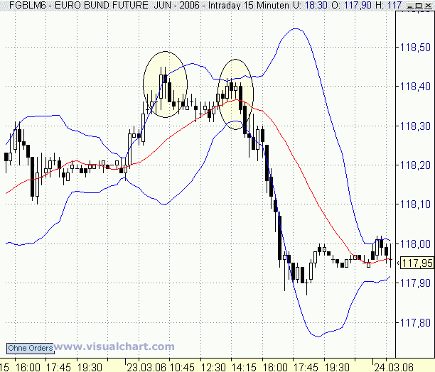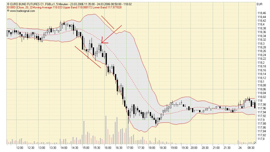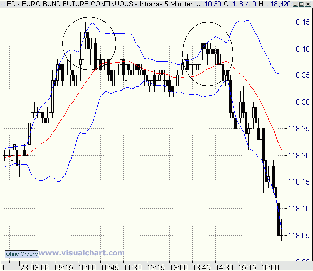 Im 5min hab ich mal den wunderschönen ReEntry am GD markiert, hätte ich hier auf den 60min Chart geachtet wäre der Trend weiterhin Long für mich gewesen und ich hätte im 5min Chart nicht gegen den Trend handeln dürfen, erst das aufbiegen der Bänder (im 60min) hätte mir Short signalisiert, da war das Meiste aber fast schon gelaufen.