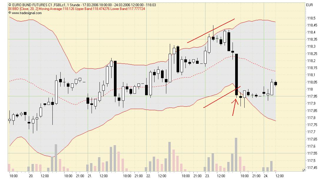 Du magst Recht haben, daß meine Interpretation der BBD im 5min nicht so recht auf 60min übertragbar ist. Da ich aber bekennender BBD-Fan bin, werde ich mich bei Gelegenheit auch mit 1h eingehender befassen. Habe den Eindruck, daß hier eine andere Lesart (Hoch/Tief innerhalb/außerhalb und Chartformationen) nötig aber auch profitabel ist.