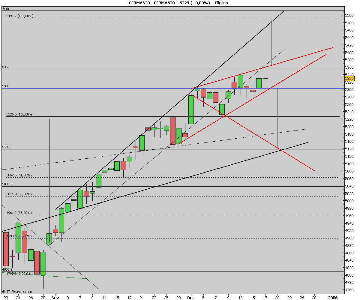 das mit den Hoch- und Tiefpunkten ist nachvollziehbar. Noch ein wenig unklar ist, wie Du vorab auf die blauen, gestrichelten Keillinien kommst, vorallem im Beispiel die linke der beiden. Ich vermute, Du nimmst einen markanten Hochpunkt und legst die Linie so, daß der Kurs an ihr Unterstützung findet, um dann die Verlängerung als Umkehrpunkt einzusetzen?