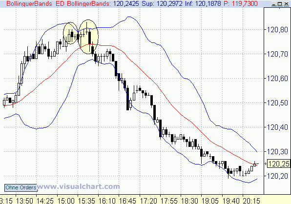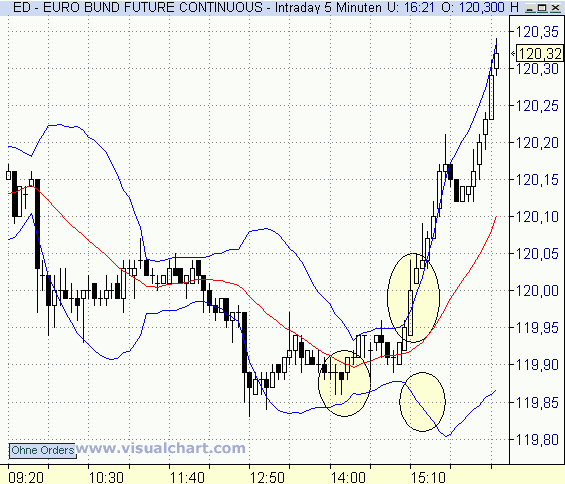 Zur Blase links: Das ist aus zwei Gründen kein setup gewesen. Beachte den Abstand zum BBD- und die price action im Unterschied zur zweiten Blase.