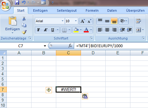 Stimmt schon, wäre nur darum gegangen den close lt. MT Systemzeit nach Excel zu bekommen, aber ist nicht so wichtig, ich wollte mich ohnehin mit Excel herumspielen, ich mache mit der Kombination Excel/MT4 auch nur die Positionsgrössenberechnung, habe das "Problem", das Fisch schilderte, recht "dirty" gelöst, einfach: =MT4|BID!EURJPY/1000