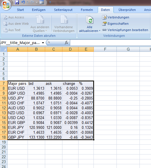 Es gibt in Excel2007 ja auch die Möglichkeit Tabellen aus dem WEB direkt in Excel dynamisch zu übernehmen.