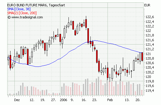"Der Zinserhöhungszyklus der EZB wird die Staatsanleihen auch in der Zukunft belasten", sagte Rentenstratege Orlando Green von der Investmentbank Calyon. Seinem Kollege Ulrich Wortberg von Helaba Trust zufolge hat sich für den Bund-Future inzwischen auch das charttechnische Bild eingetrübt. Ein Fall unter das Vorjahrestief von 116,89 Punkten im späten Handel sei durchaus möglich. Börsianer rechnen fest mit einer weiteren Anhebung der eurpäischen Leitzinsen im Mai um weitere 25 Basispunkte auf dann 2,75 Prozent.