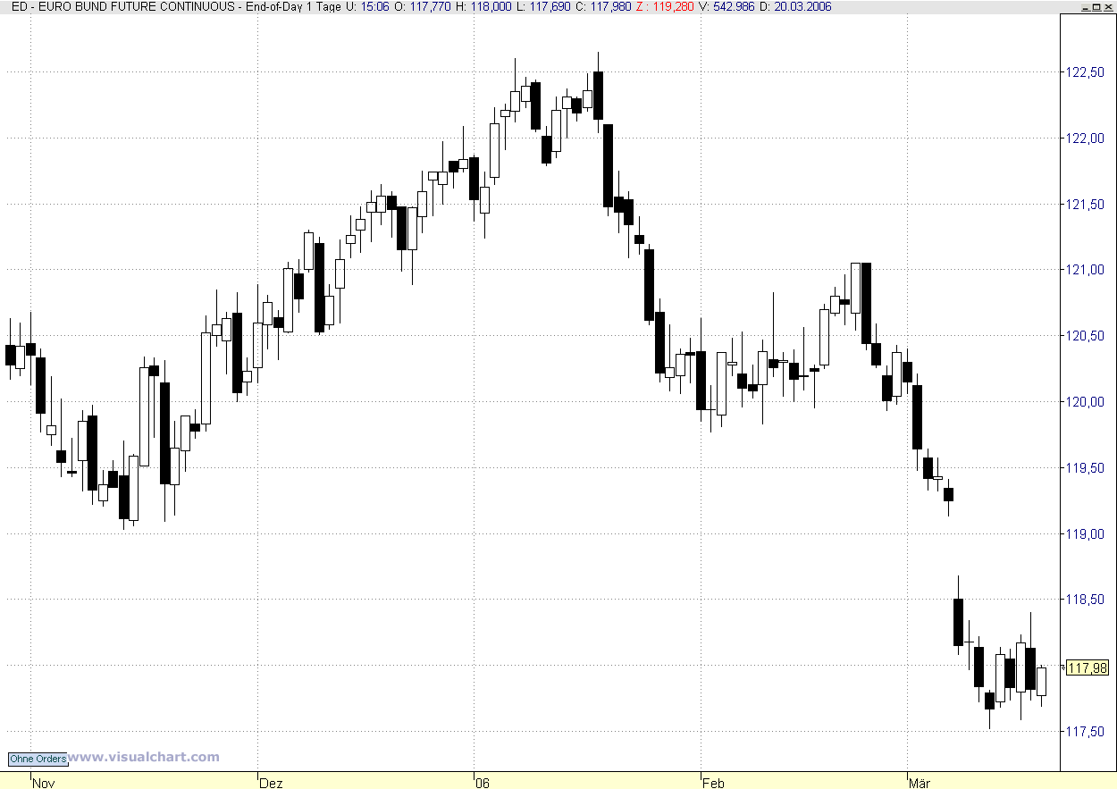 Er fiel zeitweise auf 116,95 Punkte und lag am Nachmittag noch 19 Ticks im Minus bei 117,06 Zählern.
