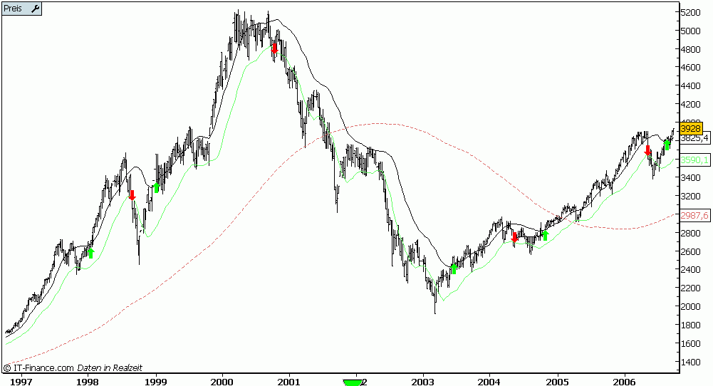 Hab mir nur mal so ein Langfrist Monatschart angesehen gegenüber Tageschart. Das wäre was gewesen um in aller Ruhe zu handeln, wie nach drei Jahren (2000 bis 2003) der Niedergang zu Ende war. Dann war wieder genug Treibstoff (Geld) vorhanden um in die Märkte zu wollen und wieder nach oben zu treiben. Aktuell müsste man meinen es wäre an der Zeit für einen Niedergang, aber es sieht eben gar nicht danach aus. Mal sehen wann das System den Exit anzeigt. Vielleicht ja nächsten Monat?