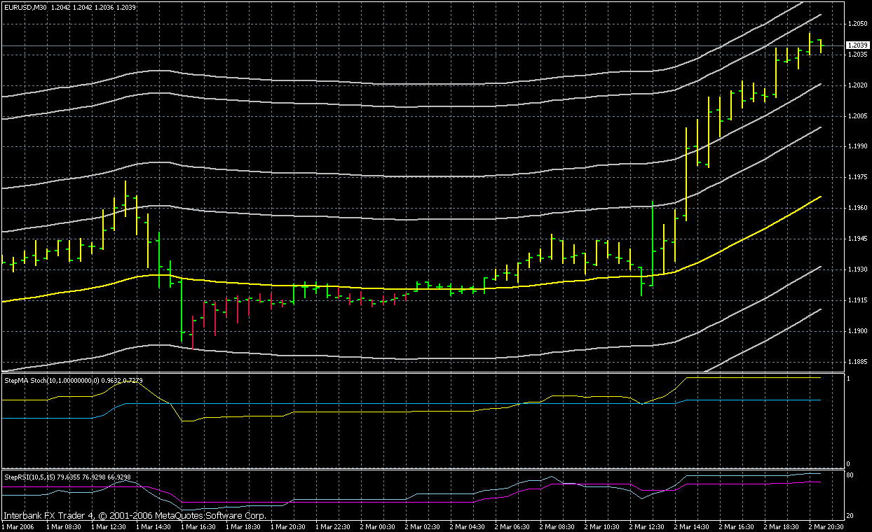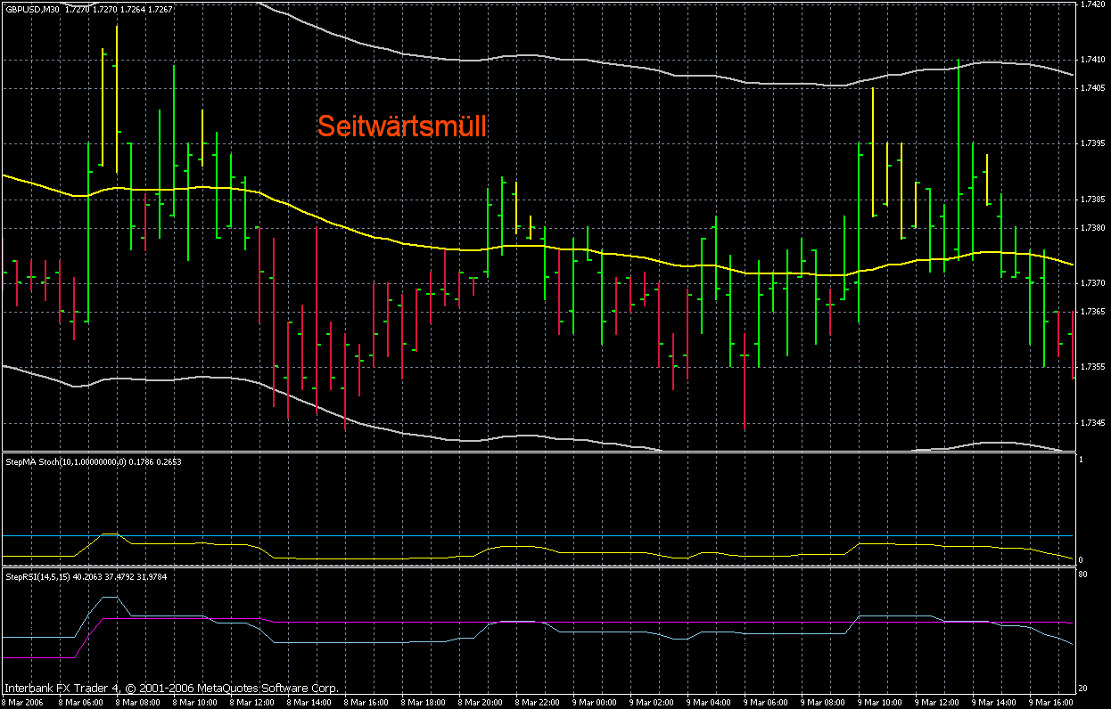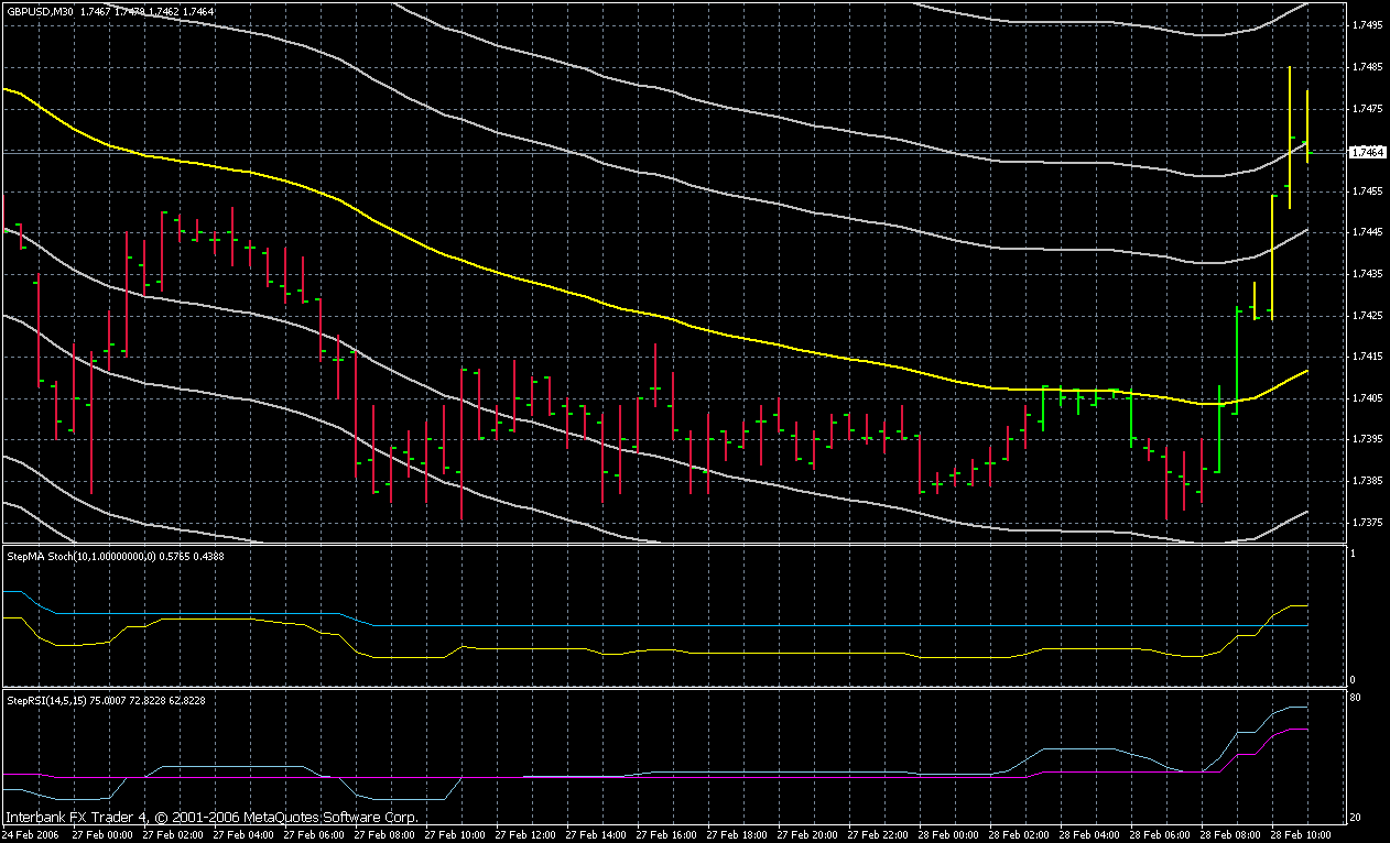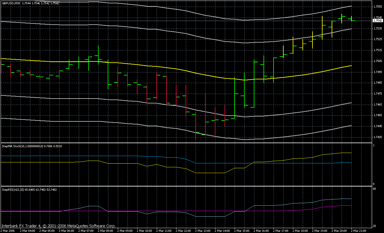Mein Vorschlag wäre, als InitalStop/Ziel 20 Pips für GBP und 15 Pips für den Euro zu nehmen. Aber ich bin mir nicht sicher. Ich hab das nur anhand der letzten 2Wochen aus dem Chart herrausgelesen. Vielleicht kann das jemand Backtesten lassen.