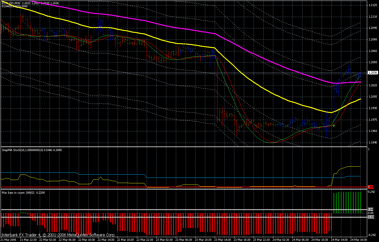 Im Chart sind noch die Fibolevels des EMA50 (silbernde Farbe) drin, die ich persönlich zur Zeit noch als das beste Hilfsmittel für den Exit im Chart haben möchte. Ich hatte diese Idee der Fibolevels im Originalthread gepostet, aber ich glaube es hat keiner für interessiert, Exit scheint also kein Problem zu sein, es macht aber Spass den Exit zu diskutieren *g