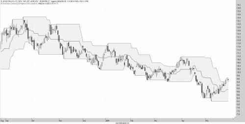 A moving average indicator developed by Richard Donchian. It plots the highest high and lowest low over the last period time intervals.