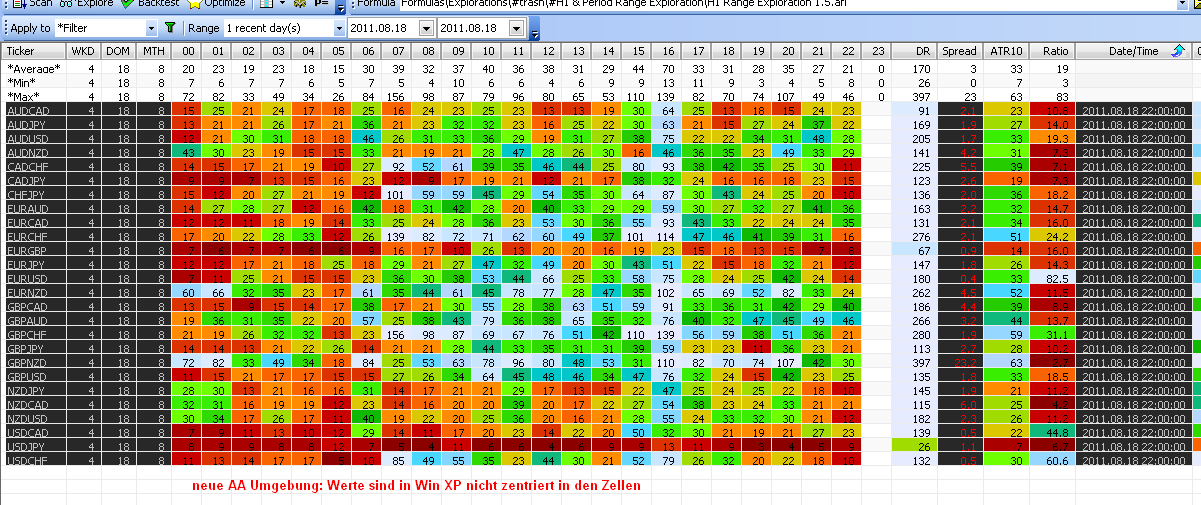 Mir ging es darum, dass die Zellwerte im neuen AA unten anstoßen (in Windows XP pro SP3). Im alten AA liegen sie mehr zentriert. TJ meint, es wäre das Rendering in XP schuld. Das fällt hauptsächlich dann auf, wenn die Zellen farbig sind. Kann das jemand, der die neue Beta testete, bestätigen? Wie schaut es in Windows 7 aus, wenn die Zellhintergründe farbig sind? Ich habe bisher wenig Interesse gehabt, mir Win 7 zu beschaffen. Einerseits aus Faultheit alles neu einrichten zu müssen, andererseits wegen "Never change ...."