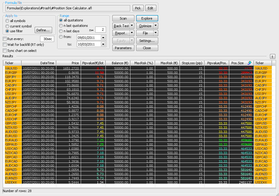 Am Rande.... SetOption("NoDefaultColumns", True); setzt einfach die zwei Standardspalten für Ticker und Datetime außer Kraft und man kann eigene Zeilen für diese zwei Parameter erstellen. Setsortcolumns sortiert automatisch nach einer ausgewählten Spalte, ohne dass man ständig auf den Spaltenkopf klicken muss.