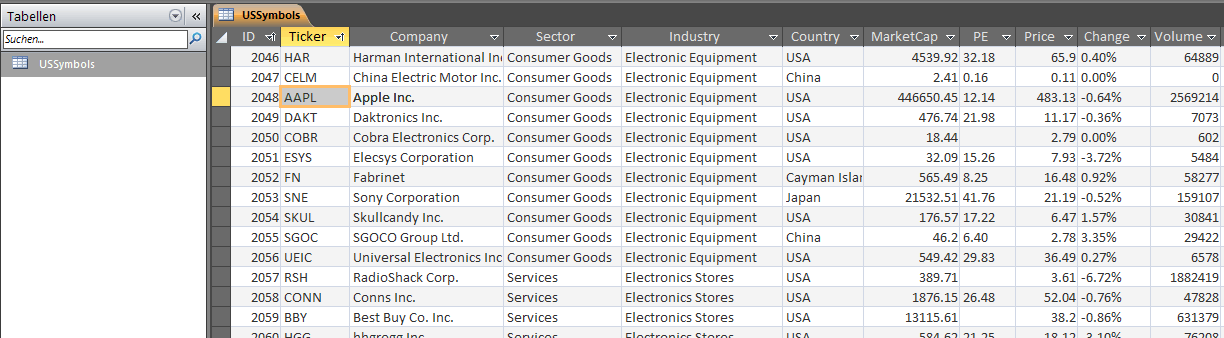 Die unten verwendete Access DB im Bild hat veraltete Werte. Nicht wundern. -