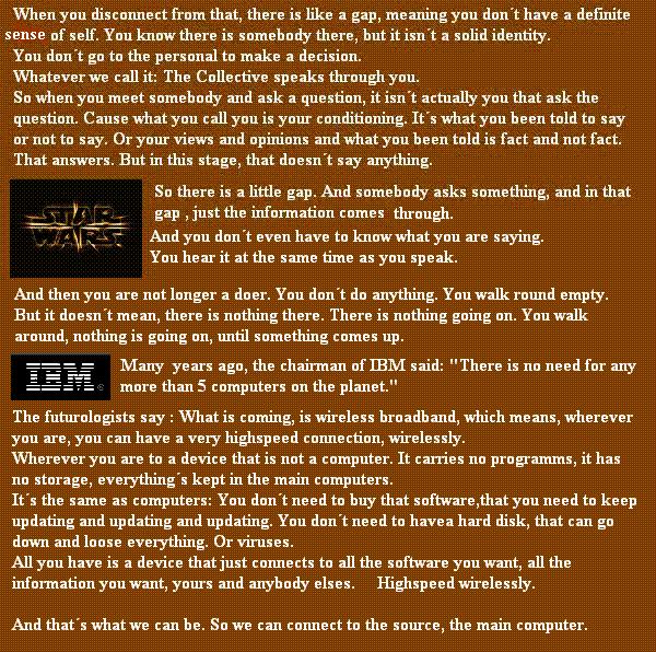 Dennoch gibt es einen anderen Teil des Unterbewusstseins, der noch tiefer liegt und den C.G. Jung ein wenig ungeschickt das "kollektive" Unterbewusstsein nennt. Und dieser Teil von uns protestiert gegen die spirituelle Kastration, der wir alle zum Opfer fallen, so wie die Helden von "Matrix" in den Krieg ziehen, um gegen ihre Sklaverei zu kämpfen. Hoffen wir, dass die Zukunft ihnen den Sieg bereiten wird....