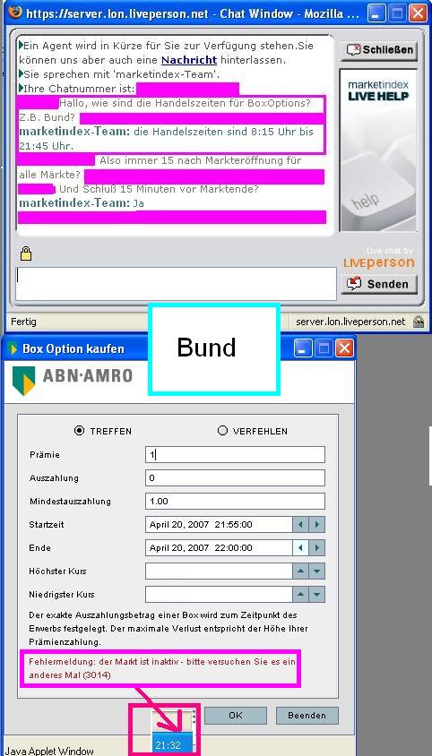 ABN hatte 21:45h für seine Profi Handelsplattform (Bund) angegeben...