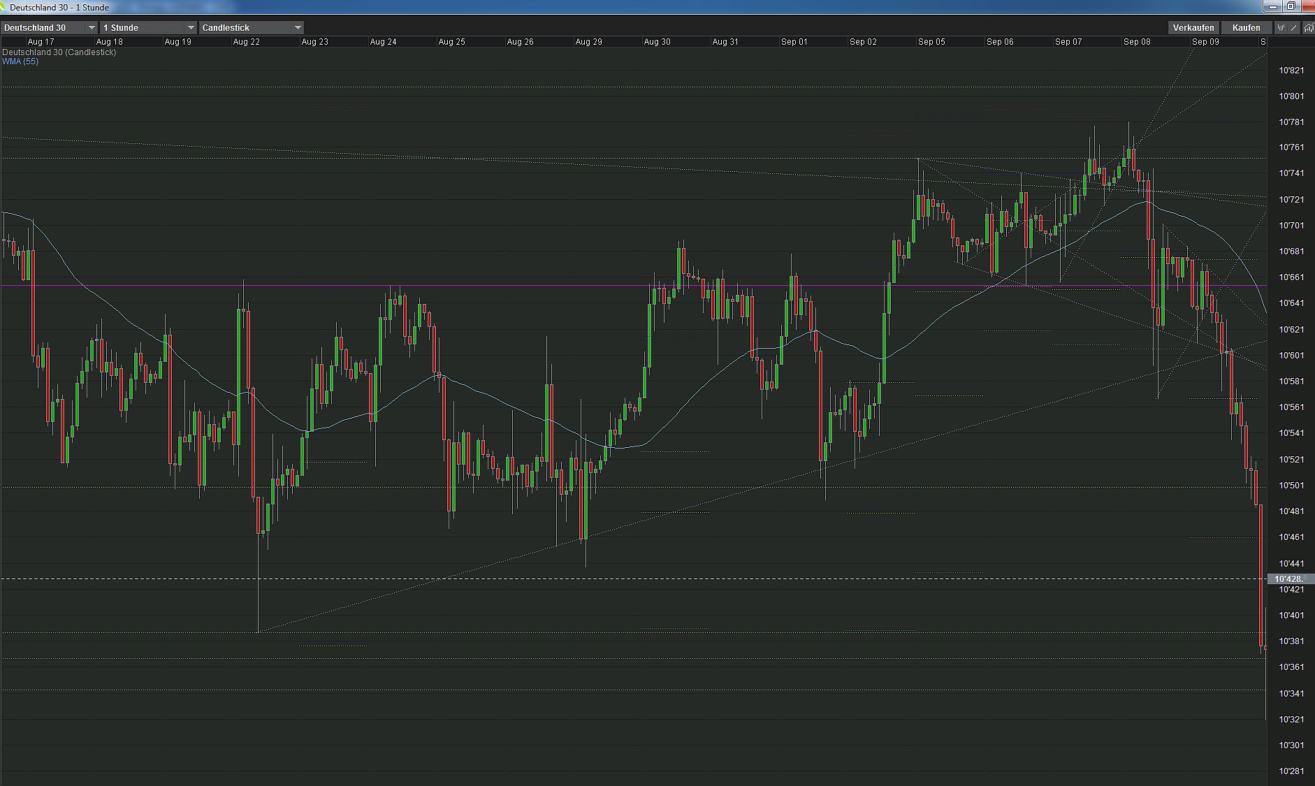 Siehe violette Linie im Stunden Chart. Die Linie wurde allerdings im Tages Chart gezeichnet: