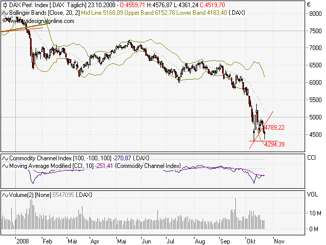 z.B. wenn die Banken untereinander Ausfallversicherung - gedeckt durch Steuergelder - haben, freut mich das für sie. Aber das heißt doch noch lange nicht, daß die Banken ihre Kunden jetzt in Ruhe lassen? Heißt auch nicht, daß die Banken jetzt einfacher Handelskredite für die verlierenden Zocker geben werden, damit die weiter Aktien kaufen können; den Mittelstand plötzlich wieder finanzieren; usw. Also hat man m.E. nach jetzt nur mal sicher gestellt, daß die (meisten) Banken auf unsere Kosten überleben werden. Aber MEHR heißt das nicht....bin neugierig, wie lange diese Rallye anhalten wird.trade what you see - not what others believe!