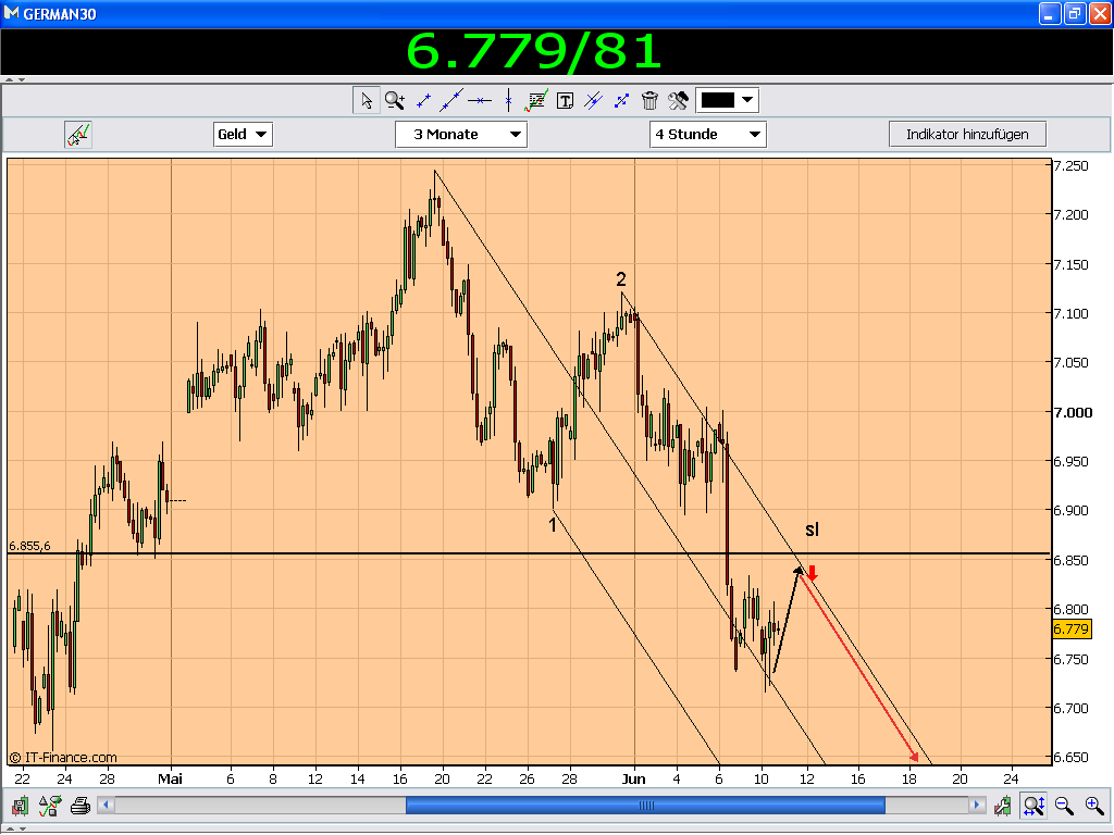 Einstieg short 6828 TP 6777 STOP stück überTageshoch