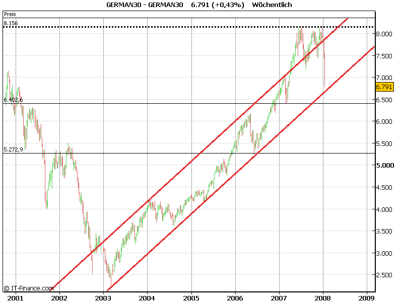 Was mich ja an diesem ganzen Drama so ärgert ist, das mein Tradingkonto im Cash ist, und mein alter VWL-Fonds über den ich am 1.1. hätte verfügen können, jetzt Verluste einfährt, die ich mit meiner Enthaltung von den Märkten versuchte habe zu vermeiden. Nun muss ich das wohl aussitzen. Fundamental ist doch eigentlich alles I.O.. Nix ixt wie 2000, sollte also nicht so lange dauern bis der Trend wieder nach Norden dreht. Ich werde mich noch aus dem Handel raushalten, bin halt noch zu frisch im Geschäft und da ich nur mit CFD handele ist mir der Hebel im Moment zu selbstmörderisch.