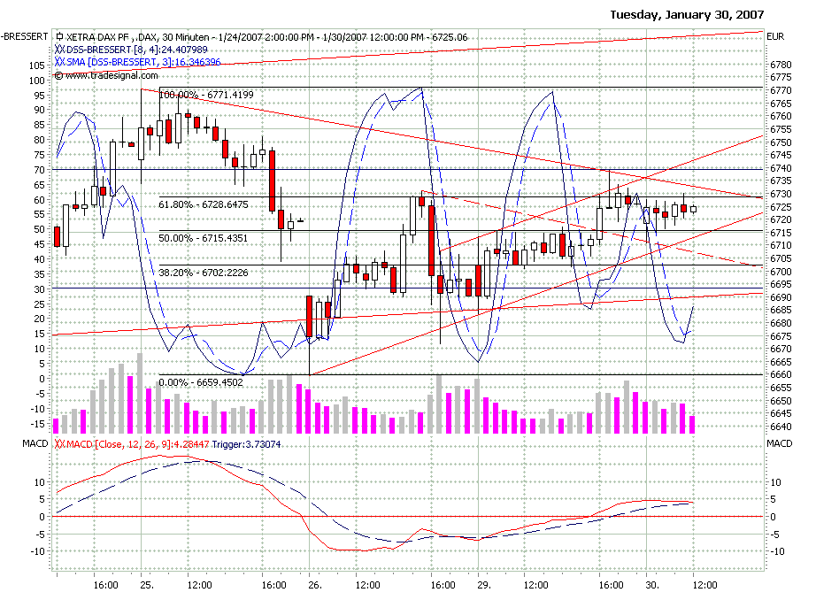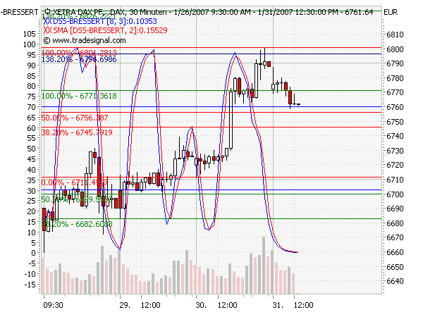 Im 30m Chart ist eine neg. Divergenz beim Bressert 8-4 sichtbar.