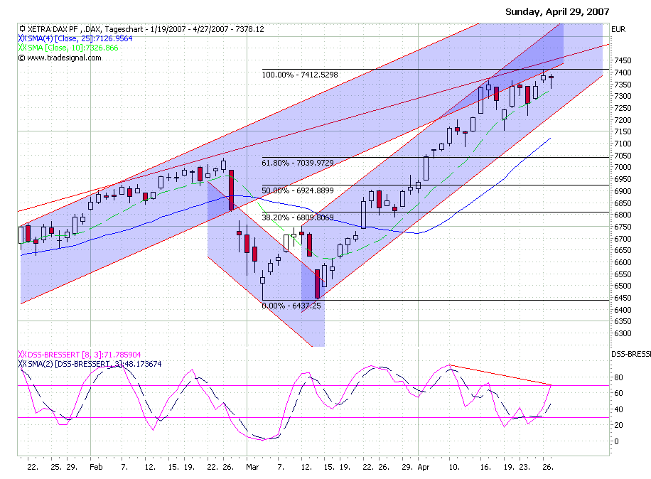 Ja, das ATH beim Euro hat er problemlos weggesteckt, vorerst, aber kommt es zu einer kräftigen Korrektur, wird man dann sagen, der hohe Euro ist der Grund dafür oder 1000 pkt. in 8 Wo., das konnte nicht gut gehen.