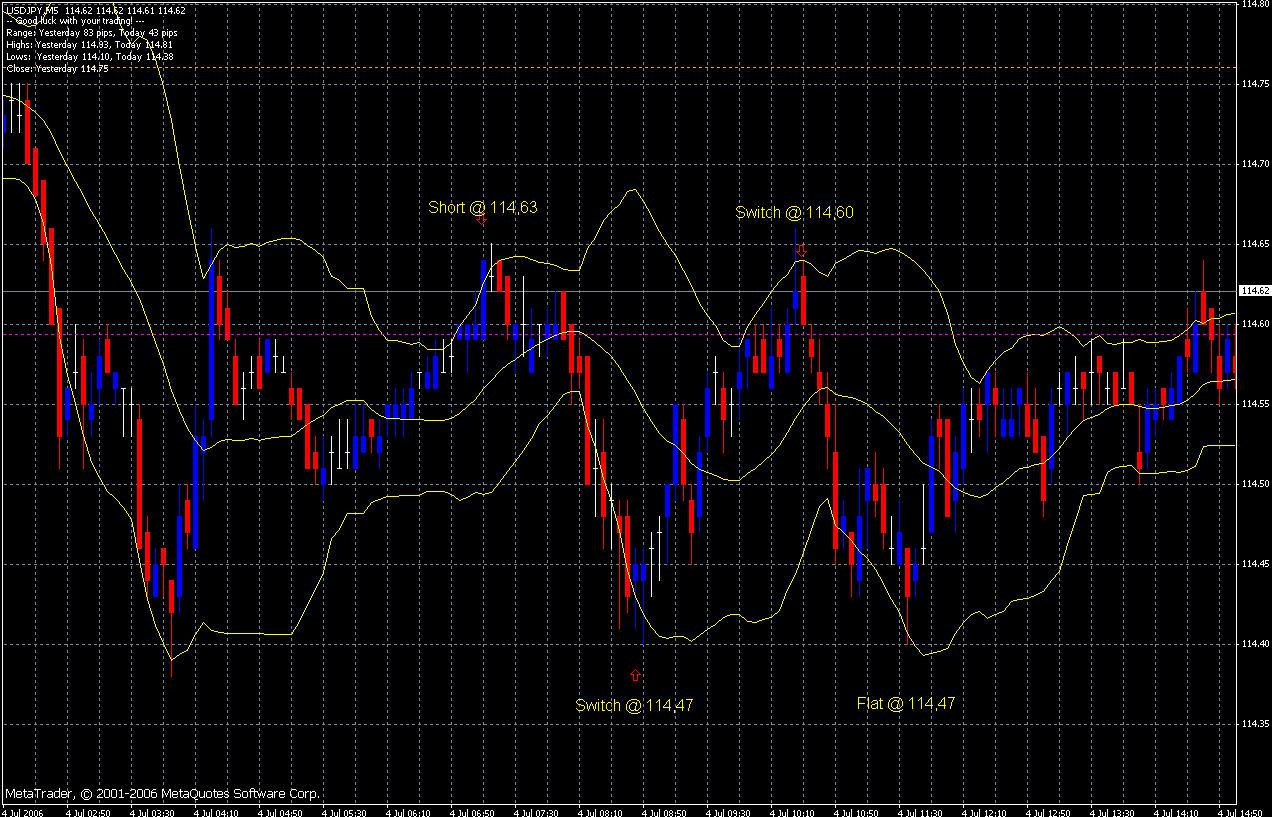 Nachdem auch in den anderen Pairs nichts los war, sich keine wirkliche Gefahr für ein Verlassen der Range auftat entschied ich mich die Posi bei 114,47 zu drehen, wieder mit 10 Pips Nettostop, der erste Gewinn betrug somit 16 Pips, zwar nicht die Welt, aber der Mensch freut sich.