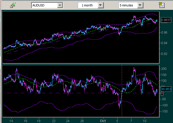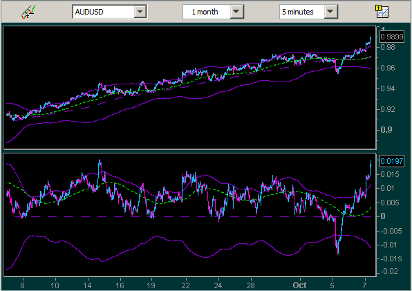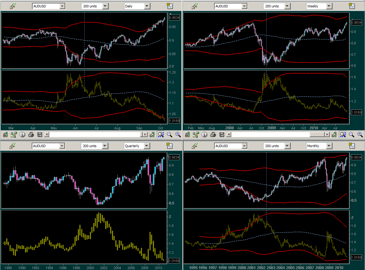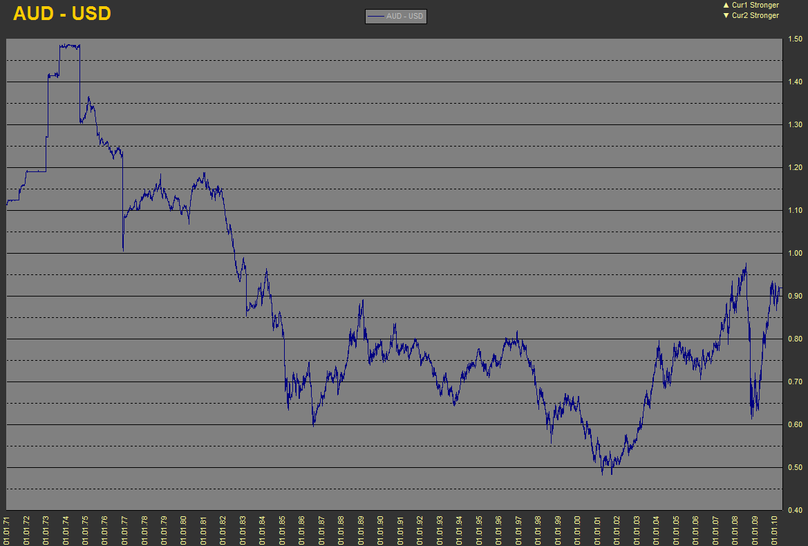 Auch wenn ich kaum Wachstum für die Australische Wirtschaft sehe, ist sie zumindestens stabil, da schätze ich die Risiken für die USA und die der Eurozone für höher ein. Der kanadische Dollar ist fast im gleichem Maß von den Rohstoffpreisen anhängig, aber dort haben wir einen Leitzins von 1% vs. 4.50% in Australien. Von den stabilen Währungen ist der Aussie die einzige Alternative als Carry Trade im Moment.