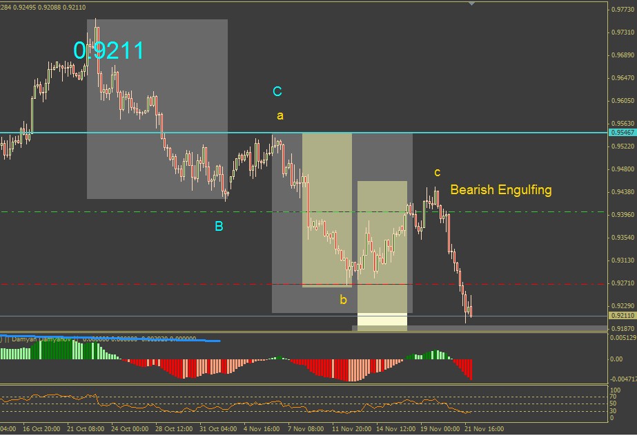Hier der 4h-Chart mit ABCD und einem Bearich Engulfing Pattern.Ein Trader muß die Geduld aufbringen,den Moment abzuwarten.