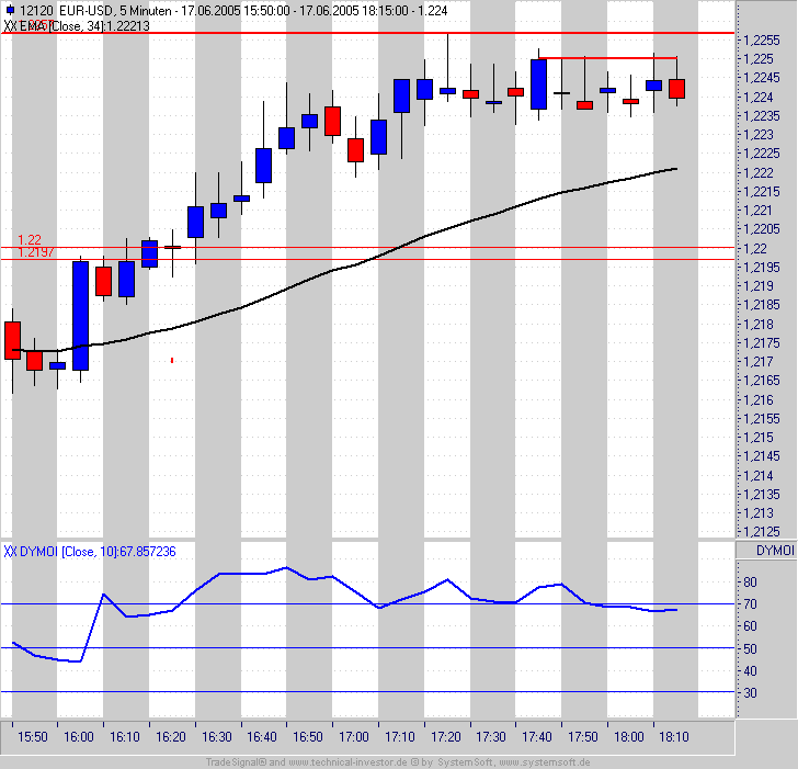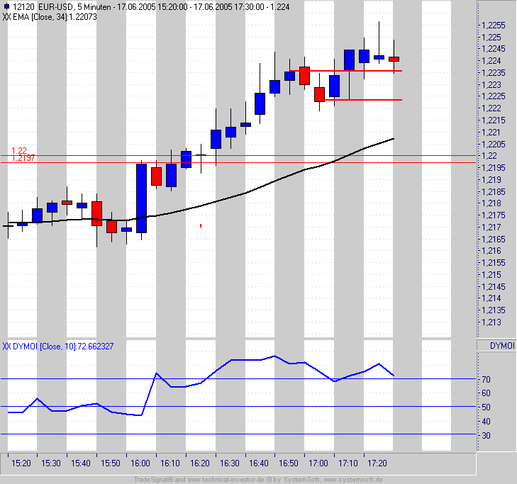 Nun ja es ist Freitag Nachmittag, der Euro ist schon seit heute morgen 100pips gestiegen, die 1,22 waren schon mal Widerstand im Verlaufe des Tages. Da kann man schon mal auf einen Abpraller spekulieren. Deshalb sehe ich den Short-Trade kurz unter 1,22 auch nicht als schlechten Trade an, den wenn man sich andere MOM Indikatoren anschaut wie den ADX, konnte man auch eigentlich nicht von einem anziehenden Momentum sprechen. -