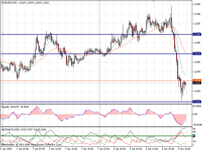 du sagst es eigentlich schon. Ich habe immer ein Chartfenster noch mit einem größeren TF (insgesamt sinds ca. 6 Chartfenster für meinen einen Bildschirm) offen. Normalerweise den 30min, der reicht für das meiste aus. Aber man sollte auch die Größeren nicht missachten. Oft zeichne ich mir einfach die Trends in den großen ein (als Gedankenstütze). Dann sieht man auch sehr schnell wo wann eine Unterstützung oder Widerstand bricht. In meinem Chart wurde der "langsamste" Aufwärtstrend bei spätestens 1,2280 gebrochen, sprich man hätte ab ca. 1,2275 short gehen können, wenn man nicht gerade beim Abendessen gewesen wäre :rolleyes: .