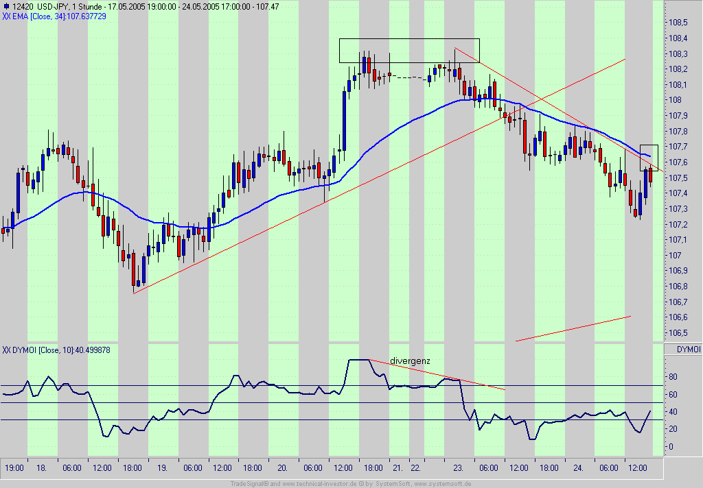 der dymoi geht parallel aus den bändern und beim zweiten tief der candle zieht er sich zurück-von den bändern.divergenz für mich und diese erfahrung .dann das signal nach GRR (ema34-TL)