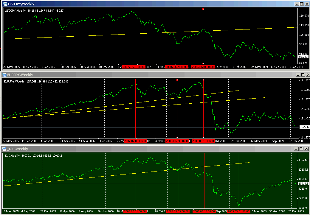 dieser Tatsache verdanke ich meinen Trading-Erfolg. Diese Korrelation ist immer da, mal stärker mal schwächer, am besten in den Abendstunden. Ich hab das zum Jahresende 2008 erkannt und seit Februar 2009 bin ich damit im EUR/Yen erfolgreich unterwegs. Möge es so bleiben.