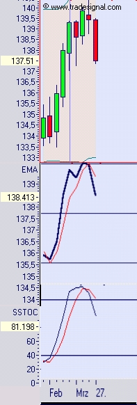 EUR/USD bereits long E. 1,2988 (war eine Entscheidung auf Grund des MACD - im Nachhinein betrachtet, hätte man bei 1,2995 (ab dieser Kerze im 5er fallendes Momentum) aussteigen müssen. Stop auf 1,2968