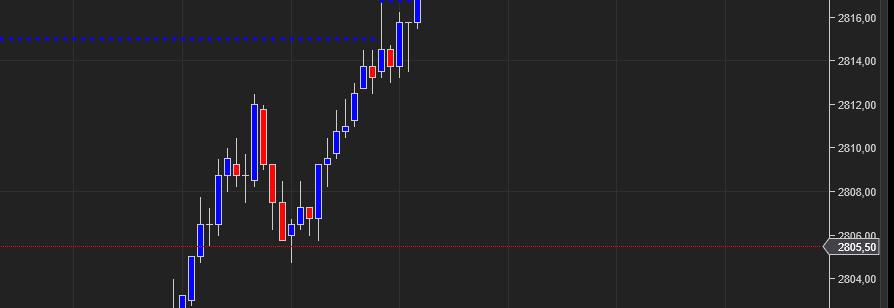 Der ES ging seit Beginn der RTH nach oben, hat auch das Vortagestief (dünne rote Linie bei 2805,50) ganz easy genommen, irgendwann haben die aggressiven Käufer doch eine Pause eingelegt, es kam zu Gewinnmitnahmen und somit zu einer Korrektur, ging runter bis ans Vortagestief, dort war Zeit genug sich die Sache in Ruhe anzusehen und mit Limitorders im Bereich 2806,50 long in den Markt zu kommen, zum Hoch des Tages (dicke blaue Linie) war mehr als genug Platz, feiner Trade, selbst für ein sehr gutes CRV war man nicht auf neue Highs angewiesen.