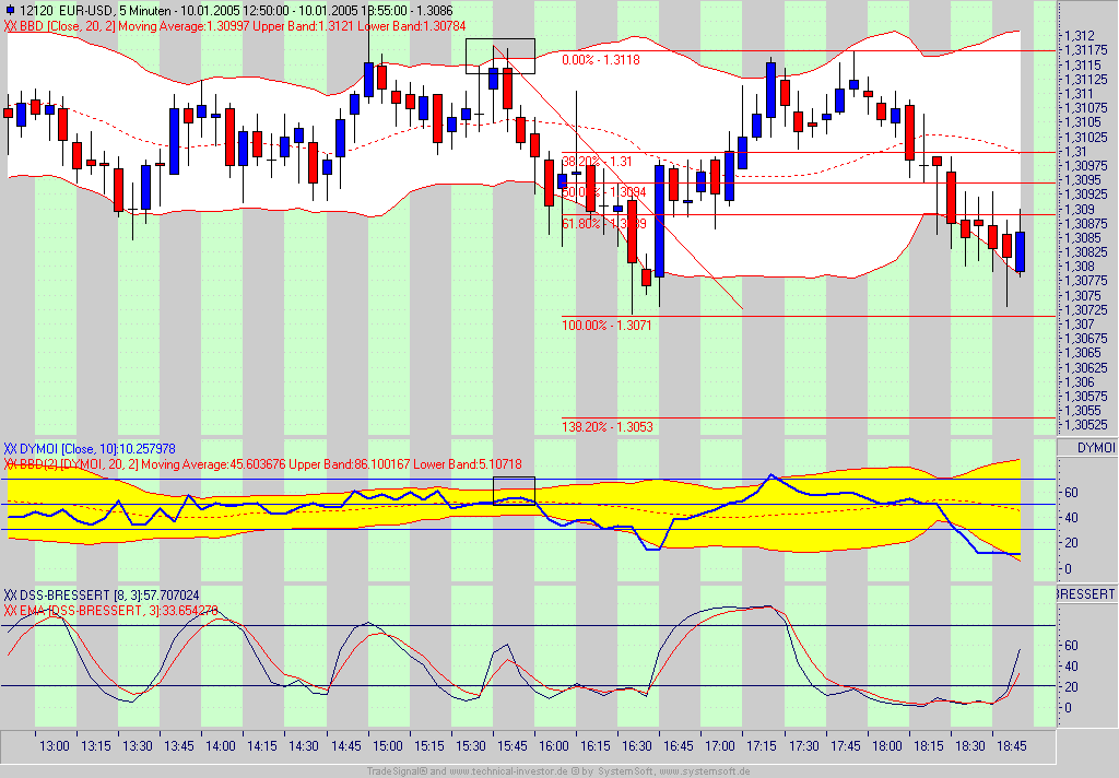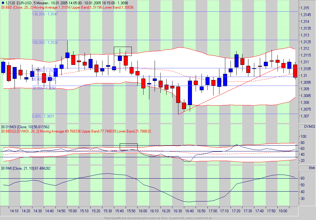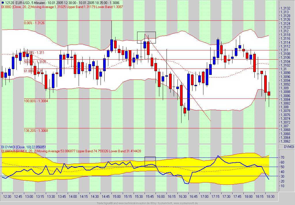 wenn du wieder zeit hast,sag es mir.ich teste einen indikator(dymoi in den bändern)der auch hier sehr schöne signale liefert,wenn man damit vertraut ist.es gab auch heute einige wenige gute einstiege.da ich noch kein kto. habe und bei consors trade,sind mir die 15-20 pips zu wenig.aber es sieht gut aus.vor allen dingen kann ich nahe am sl eisteigen.