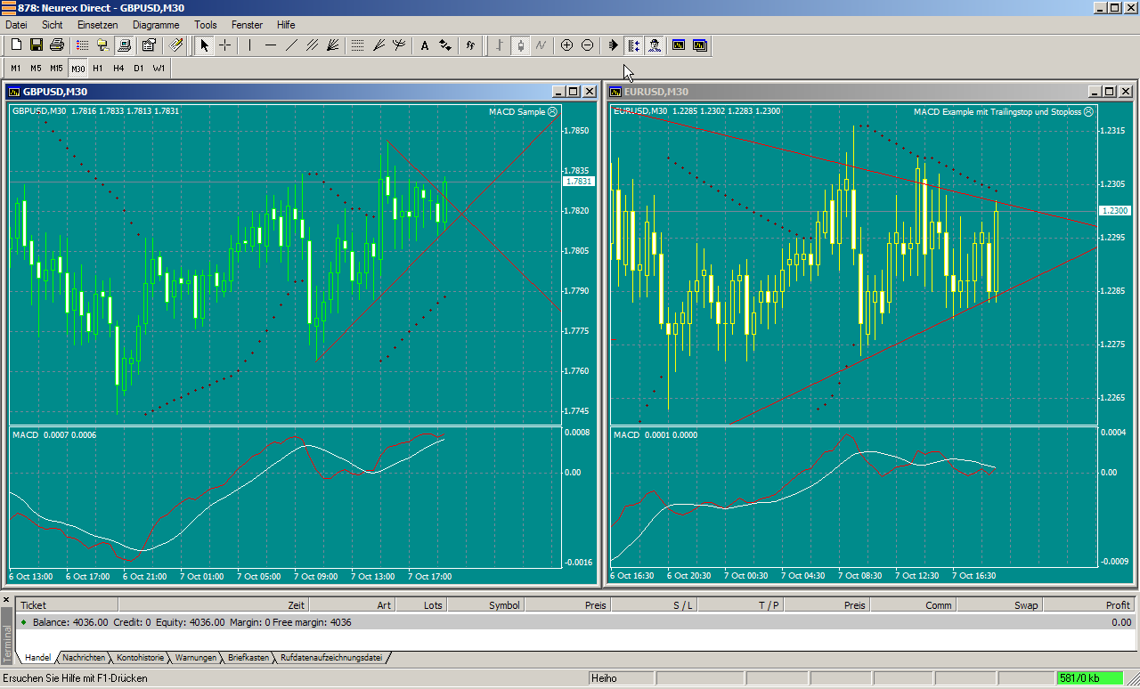 hier ein beispiel für ein automatisches handelssystem für GBP/USD im 30 min chart. ist im metatrader erstellt, kann es leider in keine andere "sprache" umschreiben.