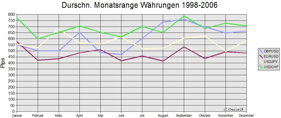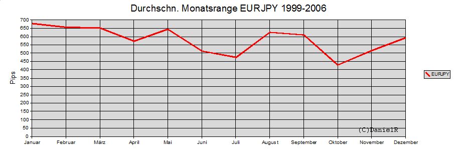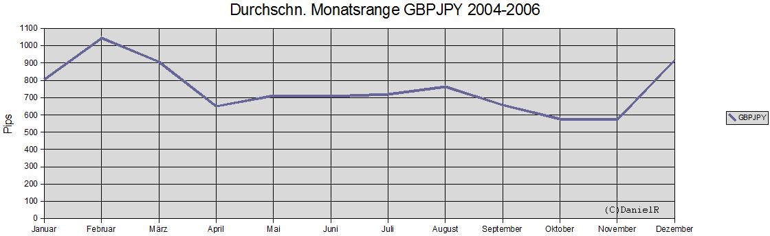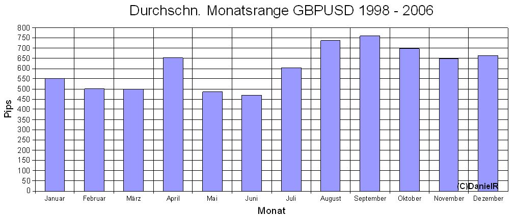 interessant ist es dabei natürlich zu wissen, was die stärksten monate in der vergangenheit waren...sprich was könnte dieses jahr noch so kommen bzw. welche monate könnten mehr range aufweisen. als beispiel mal gbpusd, durchschn. monatsranges von 1998-2006.