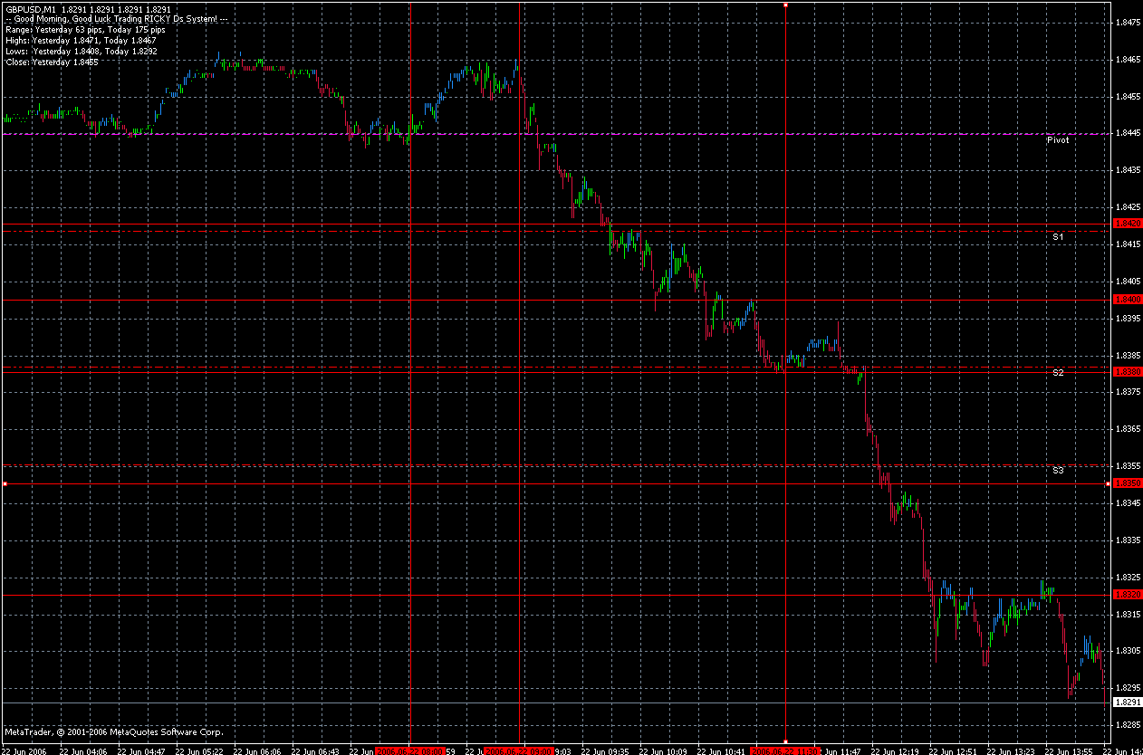 Der Gedanke zu deinem ersten Long ist klar: 20 und S1 als unmittelbare Unterstützung. Da hilft irgentein Indi der dir die Trendstärke anzeigt. Auf dem Chart siehst du, dass alles knapp über 20 noch rot ist, also zuviel Druck , um schon long zu gehen. Da erkennt man auch, dass die 20 dann als Widerstand fungiert, deshalb bin ich short bei 15 mit Ziel 80. Nachmittags hätte ich als Ziel den Sweety gehabt, aber vormittags ist die Vola höher, da versuche ich immer von 20 runter zu 80, oder von 80 rauf zu 20 zu traden. Das ersparte mir auch deinen 2. Versuch, den Abpraller bei 1,84 zu handeln. Deinen 3. Versuch habe ich auch getradet, ein paar Minuten später, endete mit Minus 13 Pips. Normalerweise wäre ich dann short bei 70 mit Ziel 50, aber der S3 lag dazwischen, da habe ich eine Gelegenheit vorbeiziehen lassen. Als dann S3 und 50 gefallen waren, short bei 43 mit Ziel 20. Also 45 Pips, ohne das ich eine Ahnung hatte, ob der Trend fortgesetzt wird oder nicht.Dieser Beitrag wurde bereits 1 mal editiert, zuletzt von „cosmopolit“ ()